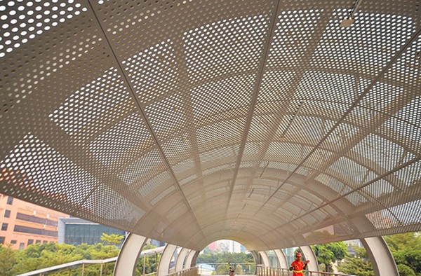 沖孔鋁單板幕墻環保,安全,健康:纖維粘接牢固減少人體呼吸纖維塵埃。更換天花板時由于體積微不足道因此廢棄物極少,有非常好的消音降噪效果。沖孔鋁單板的透氣性,比較適合于人口密集的方,使得空氣具有流通性,場合一般有:火車站、大型購物中心、地鐵、體育館、亞運場館、展覽廳、博物館等